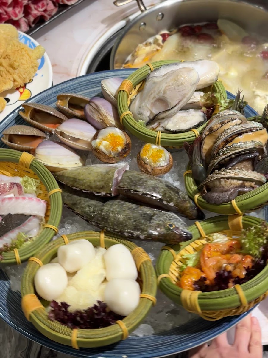 This hot pot place has everything you would like to have for friends/family gathering. The appetizers taste phenomenal. Sashimi comes after, then the chicken pot and the main hot pot. However, you might be full even before the hot pot. Don't miss out the soup base of hot pot. Match with the seafood / veggies, it is a yummy bowl of soup. The all you can drink bar is not typical sodas but the traditional mama style Chinese drinks. The cheesecake dessert is also good. Leave room for that. Will definitely come again.